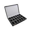 Showdoos met 18 plastic doosjesLuxe kwaliteit met zwarte bekledingAfmetingen: 280 x 210 x 35 mmAfmetingen doosjes: 58 x 38 x 15 mmMade in Germany