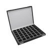 Showdoos met 42 zwarte plastic doosjesLuxe kwaliteit met grijze bekledingAfmetingen: 280 x 210 x 35 mmAfmetingen doosjes: 28 x 28 x 18 mmMade in Germany