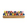Assortimentdoos met 20 buisjes met gekleurde schroefdop.Op houten basis.Afmetingen buisje ca: 45 x 12,5 mm.Afmetingen totaal ca: 240 x 75 x 45 mm.